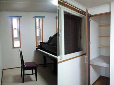 京阪神地区を中心にピアノ愛好家、ピアノ指導者、ピアニスト、ピアノ愛好家の皆様にご愛顧いただいております。しっかりとした遮音性能を持たせながら、ピアノを心地よく響かせる室内音音響を大事にした防音室です。