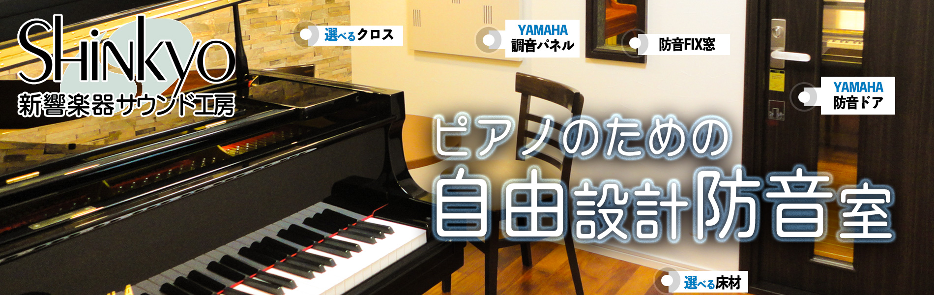 大阪 兵庫の防音工事・防音リフォーム(マンション・戸建て)ピアノ防音室なら新響楽器サウンド工房にお任せください。施工実績3,000件以上。阪神間をはじめ大阪兵庫京都滋賀奈良和歌山のピアノ指導者、ピアニスト、様々な楽器演奏者、音楽愛好家の皆様に多くの支持をいただいております。