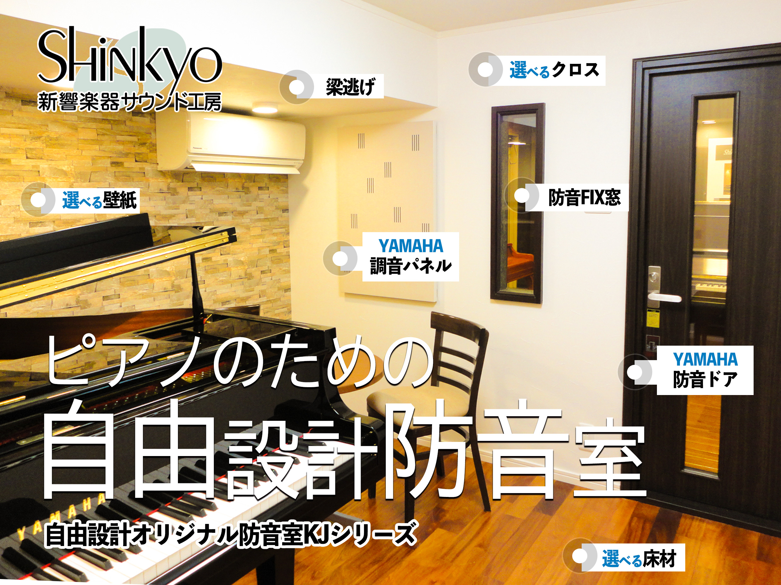 新響自由設計防音室 KJシリーズは、こうしたピアノの魅力を最大限に引き出すため、音響と防音の両面から工夫を重ねています。