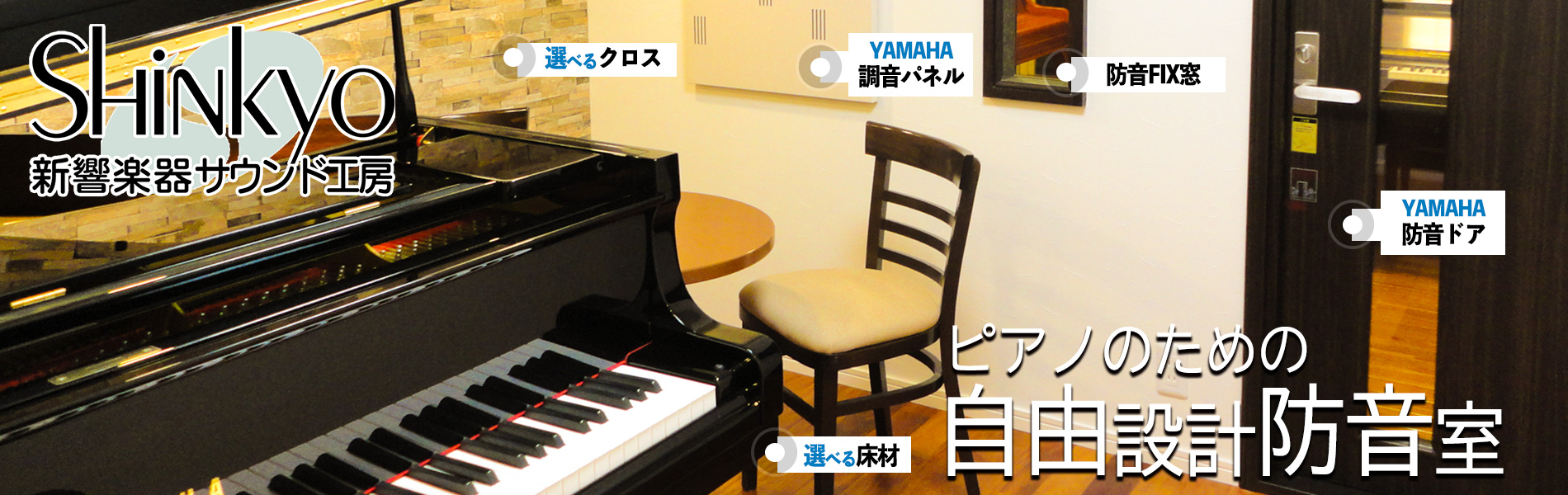 大阪 兵庫の防音工事・防音リフォーム(マンション・戸建て)ピアノ防音室なら新響楽器サウンド工房にお任せください。施工実績3,000件以上。阪神間をはじめ大阪兵庫京都滋賀奈良和歌山のピアノ指導者、ピアニスト、様々な楽器演奏者、音楽愛好家の皆様に多くの支持をいただいております。